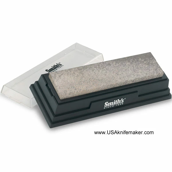 This 6” Medium Arkansas Stone is mounted on a molded plastic base to