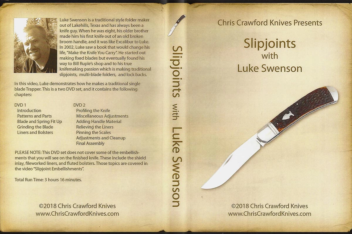 PLEASE NOTE: This DVD set does not cover some of the embellish-ments that you will see on the finished knife.These include the shield inlay, fileworked liners, and fluted bolsters. Those topics are covered in the video “Slipjoint Embellishments”