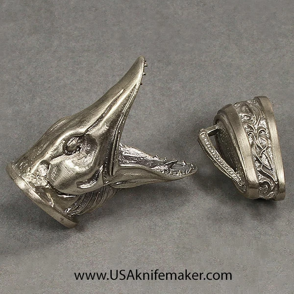 Guard & Pommel Set- Rattlesnake #3- Silver – Guard 1.25×1.37x .82, Pommel 0.49×1.19x.81