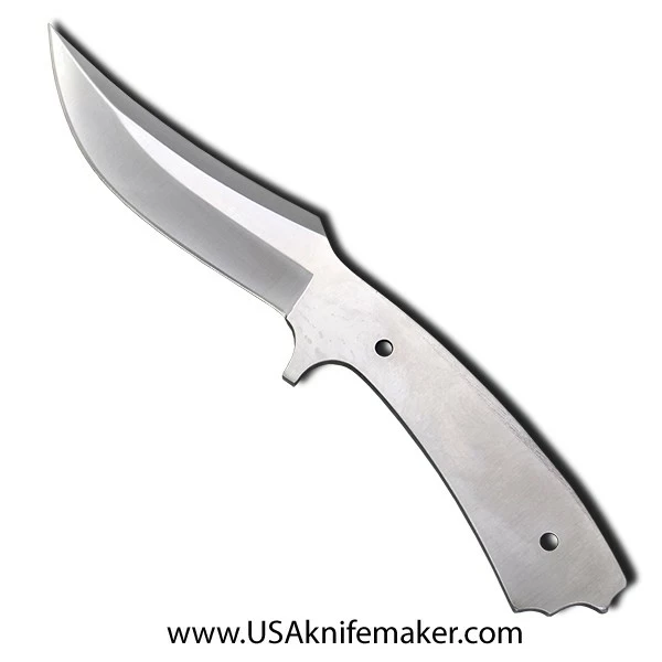 NOTE: These knife blanks are already heat treated and hardened. All you need to do is add a handle and maybe a sheath. We suggest adding a pair of g10 scales in 3/16″ or 1/4″ thick material for the handle. You could also add some handsome wood scales from our extensive assortment or even from your own stock.