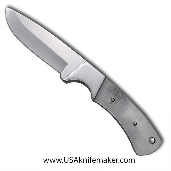 NOTE: These knife blanks are already heat treated and hardened. All you need to do is add a handle and maybe a sheath. We suggest adding a pair of g10 scales in 3/16″ or 1/4″ thick material for the handle. You could also add some handsome wood scales from our extensive assortment or even from your own stock.