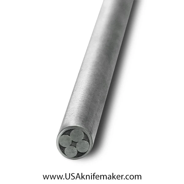 Tip: These get hot very quickly when being worked and the epoxy will soften or worse break down. This is just the nature of mosaic tubing. Keep them cool when you getting them to length or working them in your handle. Cut or grind them with fresh blade or belt. Dip frequently if you need to.