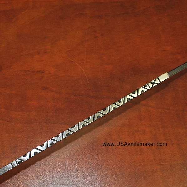 This Scottish dirk blade is made from hand-forged, 1085 high carbon steel. It Rockwells between 45-55 and is nicely polished with a round tang and a 5″ hand tooled pattern on the blade back. Made by Windlass Steelcrafts®..